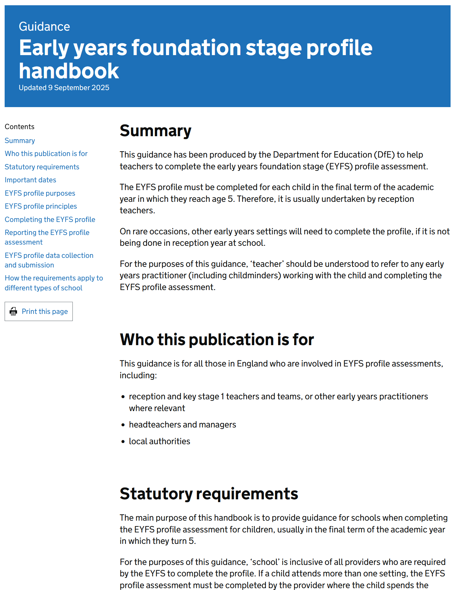 Early Years Foundation Stage Birth to 5 Matters Early years foundation stage profile handbook 2025 Ofsted Bold beginnings Information for teachers: Reception baseline assessment Information for parents: Reception baseline assessment What to expect in the EYFS DfE Development Matters Report