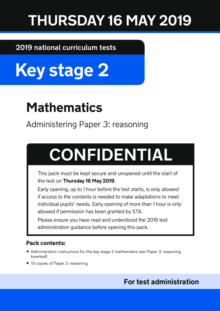 Key Stage 2 Testing 2019 2019 ks2 mathematics Administering Paper1 Arithmetic 2019 ks2 mathematics Administering Paper2 reasoning 2019 ks2 mathematics Administering Paper3 reasoning 2019 ks2 mathematics Mark schemes 2019 ks2 mathematics Paper1 arithmetic 2019 ks2 mathematics Paper2 reasoning 2019 ks2 mathematics Paper3 reasoning