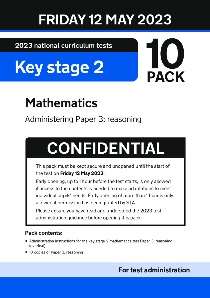 Key Stage 2 Testing 2023 2023 KS2 scaled score tables 2023 KS2 maths Administering Paper 1 arithmetic 2023 KS2 maths Administering Paper 2 reasoning 2023 KS2 maths Administering Paper 3 reasoning 2023 KS2 maths mark scheme 2023 KS2 maths Paper 1 arithmetic 2023 KS2 maths Paper 2 reasoning 2023 KS2 maths Paper 3 reasoning KS2 Mathematics test framework