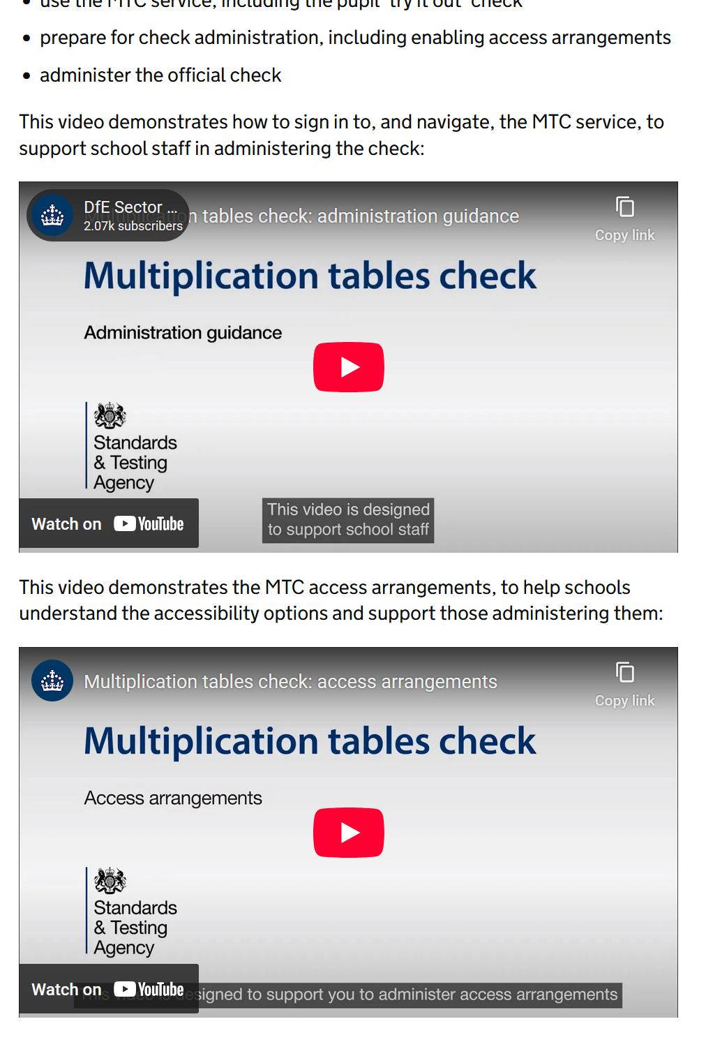 Multiplication tables check administration guidance